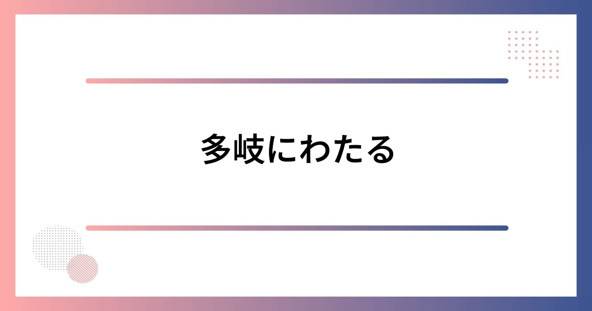 「多岐にわたる」という言葉は、ビジネスや日常会話でよく耳にする表現です。 この記事では、「多岐にわたる」の意味や語源、使い方、注意点、類語との違い、日常やビジネスでの活用例まで、幅広く詳しく解説します。 多岐にわたるの意味と語源 「多岐にわ... -